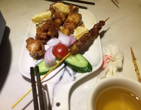 芽笼餐厅,新加坡餐厅,整体蛮经济实惠的。因为刚从新加坡回来,所以还是蛮有兴趣的。还是按照自己平时的口味点了海南鸡饭,肉骨茶。其他家人要了油条菠萝鸡和烤串类的。招牌田鸡粥这次没有吃,大家都说吃不下了...