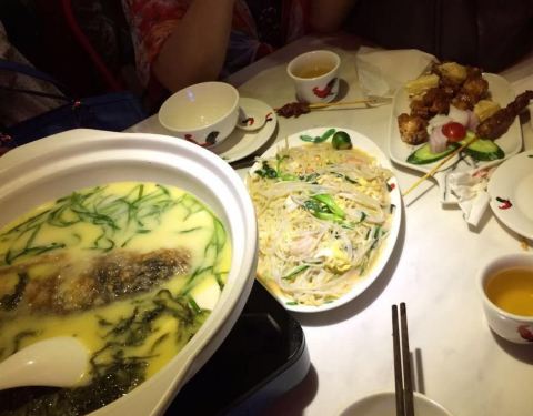 芽笼餐厅,新加坡餐厅,整体蛮经济实惠的。因为刚从新加坡回来,所以还是蛮有兴趣的。还是按照自己平时的口味点了海南鸡饭,肉骨茶。其他家人要了油条菠萝鸡和烤串类的。招牌田鸡粥这次没有吃,大家都说吃不下了,那么就留到下次再来吃吧。