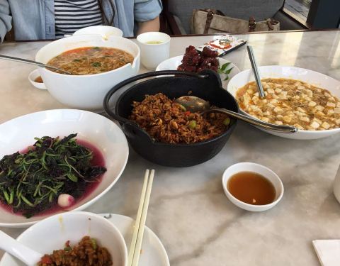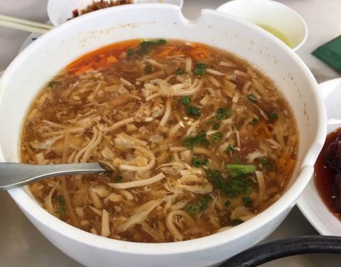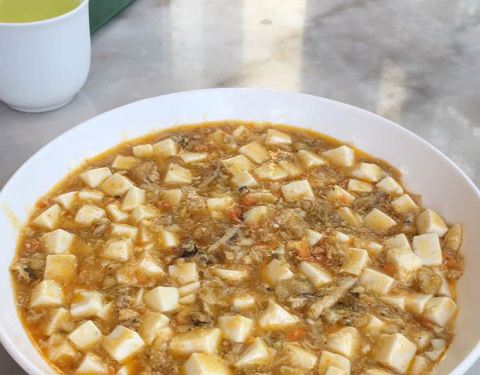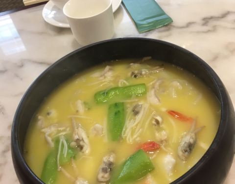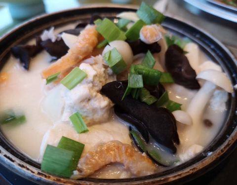 路过的时候看看,吃中餐的那就试试。点了一个糯米糖藕,不是很甜,头上顶了2颗五黑的大红枣,2个人的量么有点多了;还有蟹粉豆腐,烫的时候还蛮好吃,可惜某人不吃,我一个人勉强吃掉70[%]也是有点醉了;然后那个排骨番茄汤太甜了,像糖水一样,跟想象中不一样,虽说打包了,因为但是第二天还是倒了,全然浪费;烂糊肉丝,没自己烧的好吃,msg口感蛮多的样子;冰糕不错吃,切开2个人分分足够了。点了失误了,都是汤汤水水的,馄饨还不错吃。