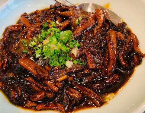 同事说,比桂花楼好吃,总算拔草! 位子超级难订,总共就两间包房,中午人还特别多,早点去抢位是正道! 甜菜雪梨汁,颜色很漂亮,粉粉的,口味也不错,清爽,带一点雪梨的甜味,好喝! 百年老酱鸭,很好吃,很入味,鸭子也不是很肥。 糖藕,摆盘很好看,味道中规中矩。 拆骨酱猪手,同样也很好看,口味一般吧。 香菜螺丝,挺别致的。香菜很嫩!螺蛳肉也不错。 糖醋小排,还不错,挺好吃的! 鳝糊,对于重口味的我来说,偏淡点,不过用料不错! 蟹粉粉皮,蟹粉真心超级多,粉皮很Q,87的价位,很超值!真心好吃! 海鲜面疙瘩,有好多蛏子,还有4只大虾,汤很鲜美,里面的丝瓜都很好吃! 酸辣海鲜汤,一般吧,主要吃到后面有点吃不下了… 炒饭,一级棒!果然是特色的! 开洋葱油拌面,一般吧,感觉还是太淡。 茄子煲,很入味,好吃!那个很淡的拌面加点茄子也是不错的选择! 油爆河虾,简直一绝,炸得脆脆的,虾壳都可以一起吃下去!应该是我吃过最好的油爆河虾了! 核桃冰糕,真心超级好吃,入口即化!赞一个! 因为旁边在修路,如果坐在露天,很容易一层灰…还是室内比较好!