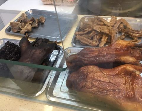 店里主要是咸水鸭和烤鸭。特地来这家尝试咸水鸭,买了一块咸水鸭和一些鸭胗,坐在秦淮河的游船上,配着鸭油酥烧饼好吃极了。鸭子做的不是很咸,香味四溢,鸭肉紧实,鸭皮很有嚼劲。