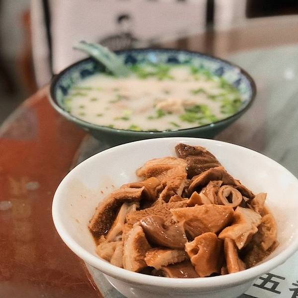 我们先去了韦记。点了它的招牌牛杂汤和五香牛杂。牛杂汤呈乳白色,牛肚软糯,汤底垫了酸萝卜,酸酸甜甜的,牛杂汤有一丝药膳的味道,大概是放了中药熬煮。五香牛杂也是很软糯入味,白萝卜很软很入味,甜甜的。牛杂的汁也有淡淡的甜味,不管是牛杂汤还是牛杂都没有腥味。好评!唯一美中不足的是,牛肚少了点筋道。但还是可以忽略不计的。