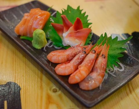 刺身是朋友吃的,我主要吃烧烤,串串比较好,鳗鱼也不错,虾仁蛋包饭外面的蕃茄酱太多了。环境和服务都蛮日式的。水为什么也要收费?