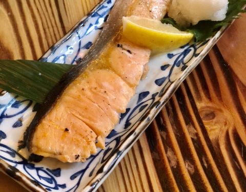 想吃烤三文鱼头就找到这家 整体日式风格很浓郁 周末晚上5点不到到店用餐不用等位 5:30左右就开始陆续拿号等位了 服务还是不错的收餐盘蛮积极的 烤三文鱼有点偏咸 烤墨鱼肠搭配啤酒不错