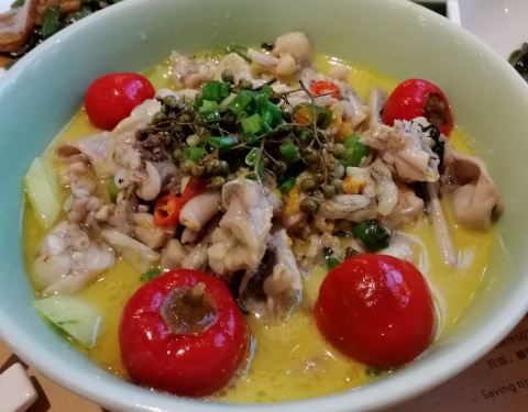 非常就清理得很干净,汁拌饭很开胃,泡椒牛蛙吃起来太辣了,不喜欢这个味道,紫苏鱼好吃,汤很鲜,肉...