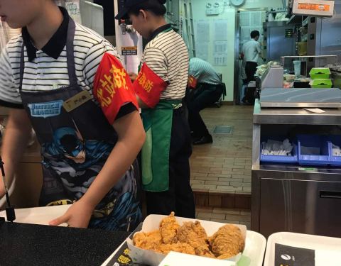 这个连锁店经常看到,就是把饭和炸鸡结合起来,能够同时吃到炸鸡和饭的中式快餐店。在北站候车楼靠里面。加上南方人不喜欢炸鸡,人就少了。优点就是清静,有时间可以坐时间长些。