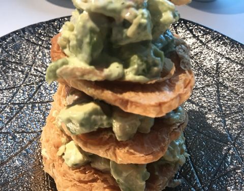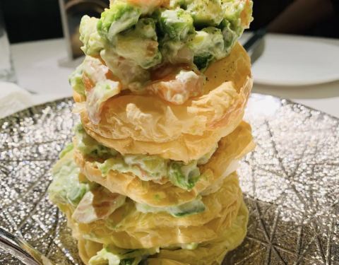食庐(虹桥南丰城店),环境不错,高端大气上档次。牛油果三文鱼龙虾塔,叠高高,足足有四层。芝士煎藕饼,芝士味很浓厚,不算太油。鲳鱼饭,很有水准。