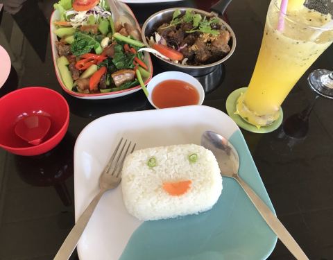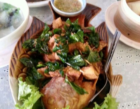 中餐馆,中餐为主,也有泰国菜,里面环境不错,是封闭式的,有空调,推荐炸鱼。人均300泰铢,服务很好