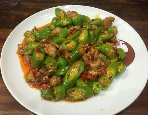 - ...像是四川的辣子鸡丁是用干辣椒来做的,他是用小青辣椒做的,所以拌着饭吃很好吃,然后土豆丝也还可以