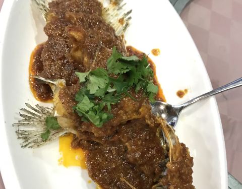 知味海鲜在亚庇也比较有名,离大茄来不远,生意很好,食客很多,经常要等位。点了咸蛋黄炒蟹,奶油老虎虾,蟹籽炒饭味道还行,海鲜新鲜。店员会讲中文,人均一人100多Rmb,比国内便宜点