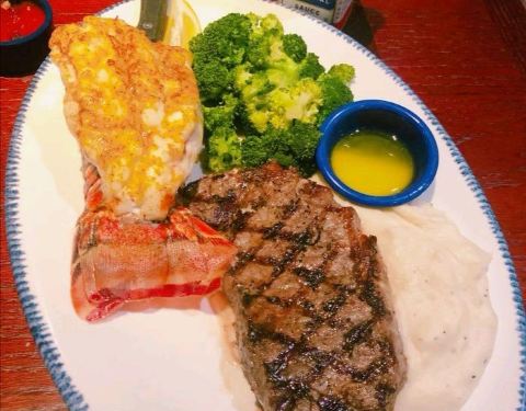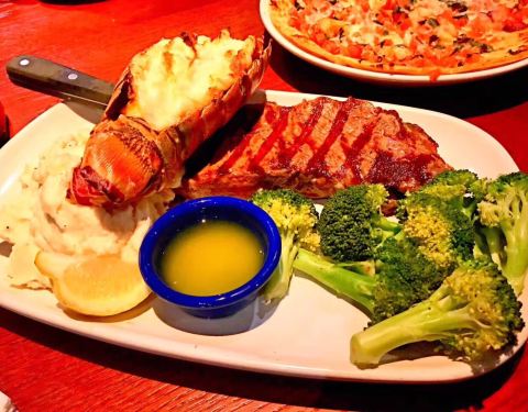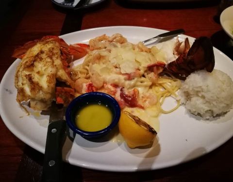 网红店,传说中要排好久的队伍呢,我们住在希尔顿,走过去还是很近的,晚饭点居然不排队,不知道是人品好还是淡季游客真的少。 环境还可以,就是按错错了点。餐前面包和色拉果然味道不错。 龙虾牛排是特色,必须...网红店,传说中要排好久的队伍呢,我们住在希尔顿,走过去还是很近的,晚饭点居然不排队,不知道是人品好还是淡季游客真的少。 环境还可以,就是按错错了点。餐前面包和色拉果然味道不错。 龙虾牛排是特色,必须吃!龙虾那么大个尾巴!牛排一般性,没有被惊艳到。 龙虾pizza好喜欢!但是老公说上面的龙虾是龙虾的边边角角…… 吃不完打包,第二天吃不怎么好吃了…… 来美帝可以尝尝的餐厅,但个人觉得还是中国菜最好吃哈! ps 记得在冲绳的美国村也看到过这家哦!日本貌似也开了好多分店呢~