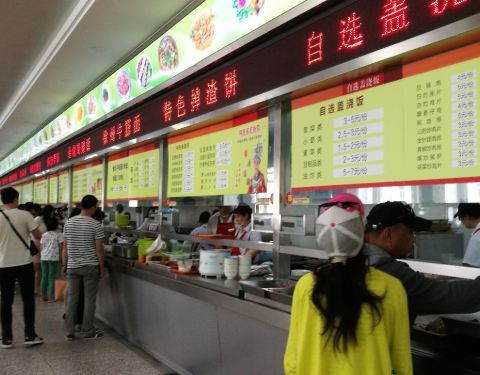 在农学院里面,据说是扬大几个食堂中最好的,品种多,环境好,服务热情,价格实惠,我点了个酸菜鱼宽粉9元,咖喱鸡饭11元。不错,推荐。