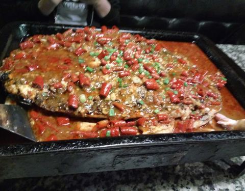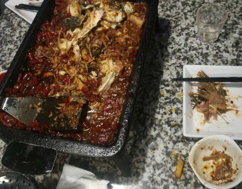 味道还是那么好,香辣味的,三个人一条大鱼,妥妥的。