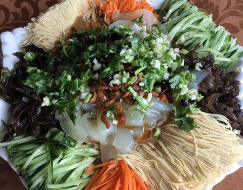 在秦皇岛天下第一关前面的古城里~需要出景区的门~门口特别的不起眼~要不是搜肯定不知道有这个馆子~ 里面别有一番味道~是个套院,有包间和散座~上菜速度可以 推荐的总统豆腐,确实不错~味道可以 拉皮也很好吃,量很大~