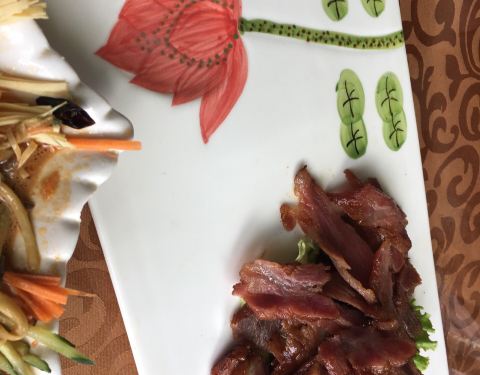 地理位置卓越,就在天下第一关的商业街中。装修也古香古色,里面除了餐饮还有客房住宿。做的本地菜味道也好吃,摆盘也漂亮,点了类似泰国烤猪颈肉作法的炭烤肉,日本脆皮豆腐做法的总统豆腐,和量非常足的五彩大拉皮!