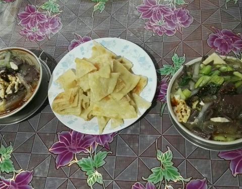 ...然看起来没有那么高大上,但是菜的味道很好,每次回来都要来这里吃一碗扁粉菜加好吃的饼,吃的美美哒