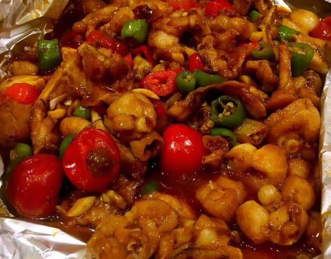 排骨,排骨味道很正,很入味。一锅鲜,有鸡爪,鱿鱼,基围虾,用蒜蓉炒的,甜甜的,还不错