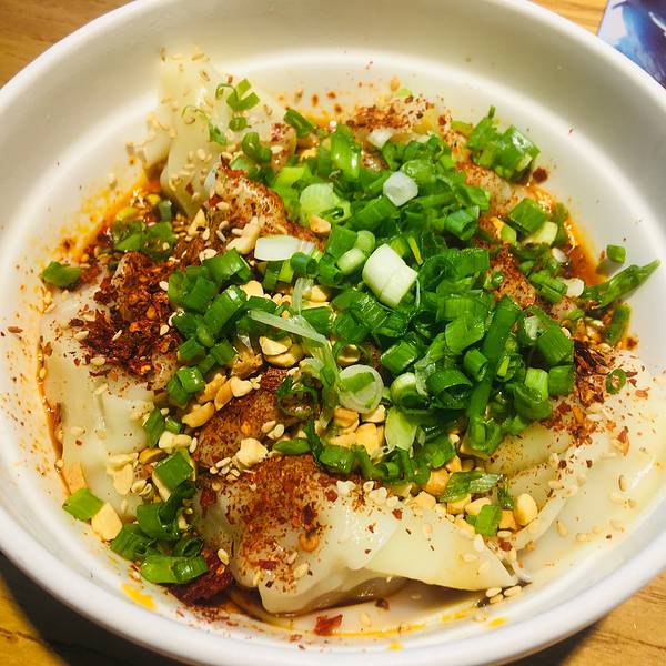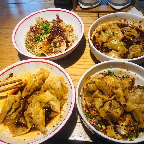 算是慕名而来,听说是一家网红店,所以在成都的时候,当地的朋友带过来尝试的。抄手,就是我们杭州人俗称的馄饨,只不过,这个馄饨的吃法类似是干捞的,拌上麻辣酱,就是一道当地人喜欢的美食。当然,入乡随俗,来成都,必须来点辣!