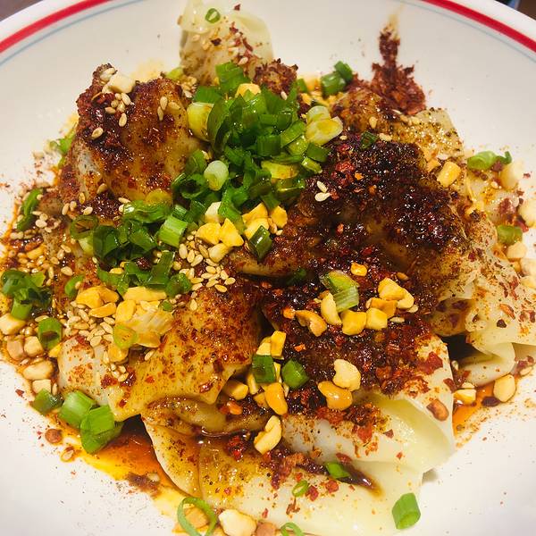 - 建设路这边美食简直不要太多,最近大火的干海椒抄手在建设路的一个小区里面