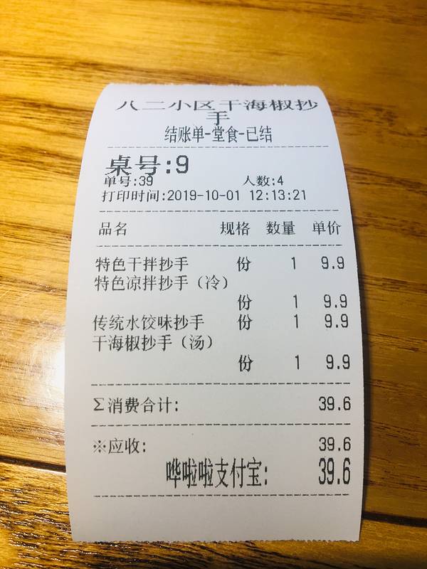 这家八二小区干海椒抄手,真的惊艳! 我从东区音乐公园出来,饿了,就近找吃的,虽然门口路面施工看不到本尊,但是绕过来发现人家生意好得根本不受影响,照样路边排队等位。 装修很时髦,浓郁的Ins+中式风。 餐具和招贴都是自己家的LOGO,很骄傲地宣布9元能吃饱(这是真的)。 我不知深浅,没有先点最贵的鸡茸抄手什么的,而是把9.9元一份的猪肉馅抄手先点了四种,反正大众货最能提现高低,对吧? 结果上来一看,太太太惊艳了! 特色干拌抄手,和特色凉拌抄手,感觉主要区别是有没有汤头,但是加入了足够多调料,包括少见的花生碎等,非常香。 传统水饺味抄手,很少见的做法,根本是把钟水饺的调料来拌抄手啊,能不好吃么! 干海椒抄手就比特色干拌还要辣,挑战嗜辣底限。 四份抄手分量十足,2个人勉强吃了2碗,只好打包! 不管是卖相、味道、调料,店内环境还是服务,其他抄手店简直望尘莫及!! 第一次来,但是真的爱上了。目前我还没在成都吃到哪一家抄手如此高性价比呢,即便龙抄手也没有这么打动我,哈哈。 已纳入下次推荐给外地外国友人的成都名小吃清单。
