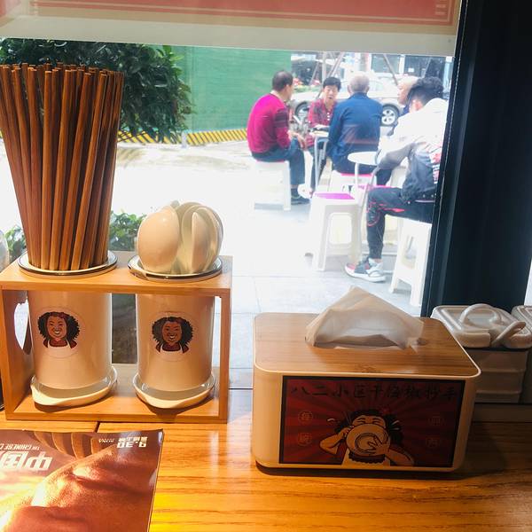 这家八二小区干海椒抄手,真的惊艳! 我从东区音乐公园出来,饿了,就近找吃的,虽然门口路面施工看不到本尊,但是绕过来发现人家生意好得根本不受影响,照样路边排队等位。 装修很时髦,浓郁的Ins+中式风。 餐具...