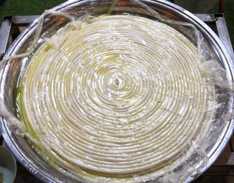 据说黄龙溪一根面制作工艺相当复杂,随着机械制面逐步取代手工,以前家家户户都会做的一根面现在几乎失传!现在少有能完整的制作”黄龙溪一根面“,所以每到节假日双休日都是门庭若市、座无虚席,甚至要排队等好久才能吃到一根面。据说一根面制作从和面到面下锅总共需要十几道工序,最后一直搓到手指头粗细,然后再一圈一圈盘在圆盘里,盖上湿布,醒上4个小时左右,就可以下锅了,下锅时由面艺师捏住一根面的一头远距离的抛入锅中煮熟就像猛龙过江般,一时间龙飞凤舞的,甚是好看,吃了面的同时也看了一场表演,太有趣了!