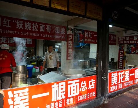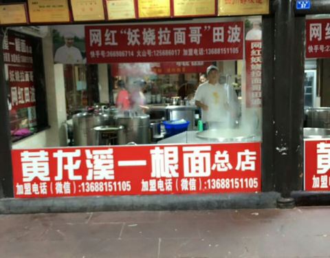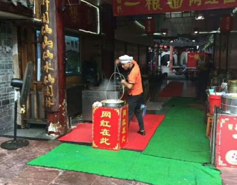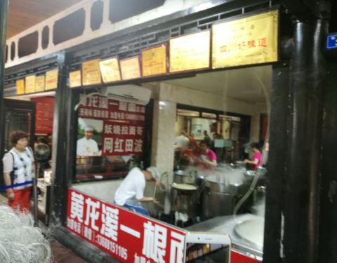 在黄龙溪主道上看到了总店,人很多,有人在花式下面。转了一会儿,在一条支路上见到另一家分店,人少了很多,也有人在花式下面。买了碗面条尝一下,口味还不错,面的口感也很筋道。正吃的时候,赶上拍视频,据说...在黄龙溪主道上看到了总店,人很多,有人在花式下面。转了一会儿,在一条支路上见到另一家分店,人少了很多,也有人在花式下面。买了碗面条尝一下,口味还不错,面的口感也很筋道。正吃的时候,赶上拍视频,据说是网红一根面西施,边下面边唱,挺有意思的!