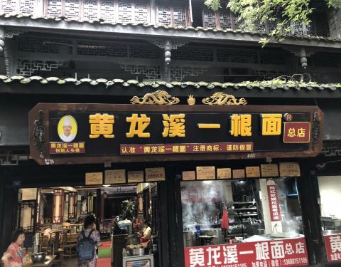 黄龙溪一根面现在似乎已经成为可加盟的品牌,很多地方有见,即便在黄龙溪古镇也出现了数家。要品尝当然应该去位于龙颈飞瀑往下不远处的总店了。餐厅规模不小,但在非用餐高峰时段也有不少食客。面店专门辟出一个...黄龙溪一根面现在似乎已经成为可加盟的品牌,很多地方有见,即便在黄龙溪古镇也出现了数家。要品尝当然应该去位于龙颈飞瀑往下不远处的总店了。餐厅规模不小,但在非用餐高峰时段也有不少食客。面店专门辟出一个区域作为打面展示,据说还有位“一根面西施”,美貌与技术并重,参观她的表演也算是黄龙溪一个可遇不可求的特色项目,只可惜我们来时没有遇上。讲回出品,酱汁、食材没有多大的特色,面倒确实是有嚼劲,这可是他们的看家本领。名气有点过,稍贵了。