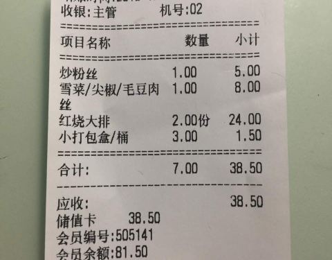 每次去父母家,必然到这家大食堂买上几个菜打包回去,经济实惠口味也好,菜量也适中,买了充值卡,充200送20,值得推荐哦