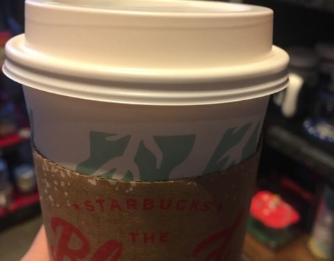 买了杯中杯的太妃榛果拿铁,榛果味浓郁,热热的,可是喝了还是想睡觉