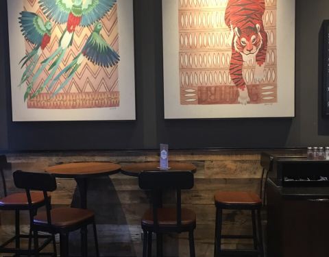 回上海的路上经过嘉兴服务区南区的星巴克,和北区的星巴克一样,旁边也是一家满记甜品,只是南区店里挂着老虎和鸟的画,北区没有。 买了杯中杯的太妃榛果拿铁,榛果味浓郁,热热的,可是喝了还是想睡觉。圣...