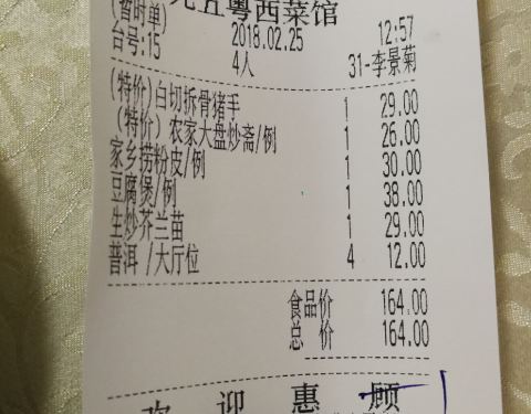 距离3/6地铁线的燕塘站超级近,步行一分钟可以到。餐厅主打粤菜,应该是湛江风味的,不过今天吃的很清淡,下次来可以试试这里的鸡。过年期间这里还有很多特价菜噢。 #白切拆骨猪手#特价29元。猪手是白灼做法的,...距离3/6地铁线的燕塘站超级近,步行一分钟可以到。餐厅主打粤菜,应该是湛江风味的,不过今天吃的很清淡,下次来可以试试这里的鸡。过年期间这里还有很多特价菜噢。 #白切拆骨猪手#特价29元。猪手是白灼做法的,味道很清,淋一些酱油调味而已。猪手皮很爽口,值得推荐。 #农家大盘炒斋#特价26元。有粉丝、荷兰豆、西兰花、腐竹、冬菇、木耳。味道不过不失,不过搭配起来感觉营养价值挺高。 #捞粉皮#原价30元。价格小贵,因为原材料就是像河粉那样的。不过酱料做的很好,甜酱油加香油,特别喜欢这道菜。 餐厅最大不足就是空间很小而且楼层矮,因为位于夹层……不过平时家庭开小灶来这里的话,是个不错的选择,出品有保证。