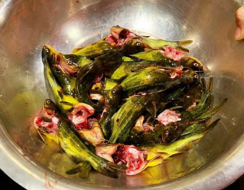 鱼泡、黄辣丁以及一些火锅菜可以煮进去,他们家的鱼是油酥后再煮,芡汁有点浓