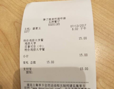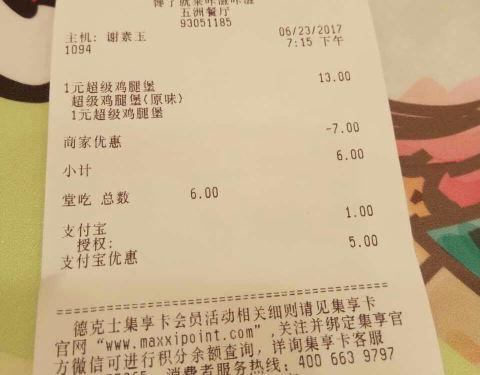 支付宝的优惠活动,门店环境还不错。德克士的鸡比较好吃,还不错,推荐吃鸡,哈哈。