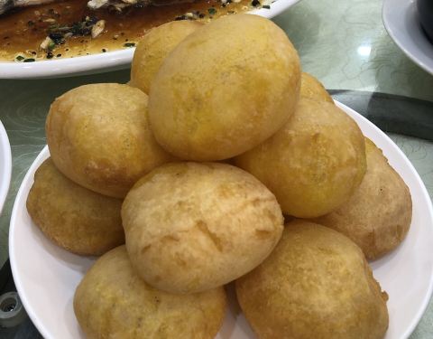 这家门前的荷花池环境幽静,吃的食材也还不错,这个炸的小醋鱼还真开胃。烤生蚝也不错。煎堆脆脆粘粘的。听介绍云吞是这的特色。薄皮大馅儿的虾仁。吃的很满足。周末采风活动非常圆满!