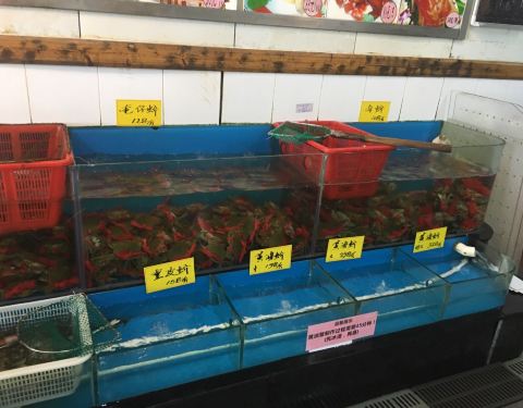 这是酒店一服务生介绍的。虽离酒店有点远,但非常值。酒家很大,食客火爆,我们七点多到,好多海鲜快卖完了,儿子要吃虾,海鲜小子在几个池好不容易找到六只,然后便宜一点😛,值得推荐是云呑,皮薄馅鲜,难怪...
