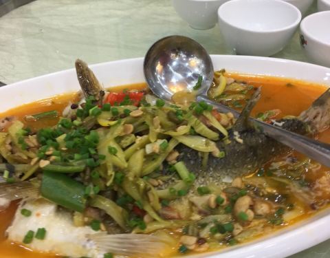 这家门前的荷花池环境幽静,吃的食材也还不错,这个炸的小醋鱼还真开胃。周末采风活动非常圆满!吃的很满足