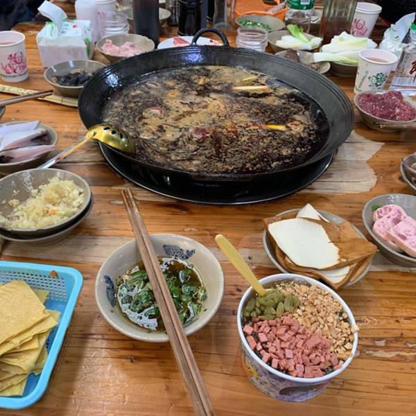 这就是火锅本来的样子,热辣,市井,重口,不像市面上那些打起“市井火锅”招牌的虚架子,鸿社告诉你,撒子叫真市井,环境很差,但氛围和味道绝对霸道;很久以前听过一个说法,火锅是重庆棒棒发明的,虽然无法考究,但可以看出火锅本来的接地气,就是毫不精致的大锅烩,用川渝人最爱的辣椒花椒调味竟然发展成全国人民喜爱的美食;那么鸿社就是最好的老火锅让你回味火锅的初心,用最重的牛油,大铁锅,扎实的花椒辣椒,食材不求高级,跑堂的叔叔孃孃态度不咋样但做事非常利落,上菜速度之快,又有眼力见,把你照顾的巴巴适适,我很欣赏这种人狠话不多的服务;红糖糍粑绝对是成都第一,很多店都是提前炸好,端上来硬的,但鸿社的绝对是最软的糍粑,入口即化不为过,爱了,肥牛好好吃,招牌的牛皮豆干,介于卤豆干和豆腐之间的软硬,点!还有干贡菜,毛肚,酥肉,卤鹌鹑蛋,反正,没得一道菜你吃了会后悔;但是一定要注意!这家的火非常大!我的千层肚煮几分钟直接散架,所以大家去吃记得控制好火候,and这家很多年轻人吃,其实很好出片,就是那种现代与90年代反差的感觉。
