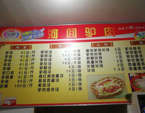 店面不是很大,驴肉火烧和驴肉汤是特色