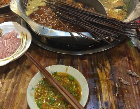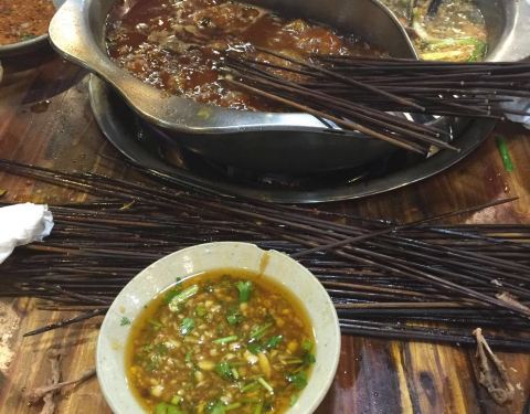 北京时间17:30,赶到成都最火的小珺肝串串香,却只排到31号。生意太好了,还要等两小时,饿着肚子看别人吃太难受,索性逛逛街再来,今天老子一定要看看有多好吃!北京时间19:50,终于排到,味道真不错,不像其它串串香那样油腻腻的,香辣恰到好处,我真切地找到人头攒动的原因了!