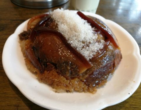 这家店在十陵大城小厨的旁边,装修很好,铺面也很大很明亮。门口路边可以停车,人行道上也停了几辆。甜烧白较瘦,里面夹的豆沙也不是太甜比较能接受。包浆豆腐其实就是熊掌豆腐,豆腐煎得很香,辣汁很入味。辣卤巴骨肉,味道一般,骨头有点臭臭的,估计是夏天没有保存好放的时间太久,不建议点。性价比一般,不如旁边的大城小厨。