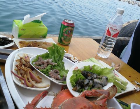 可以坐船到海上餐厅就餐,一边看大海美景,一边喝美酒,吃海鲜,吹海风,真是惬意极了,不过价格也不便宜,每人人民币200元。