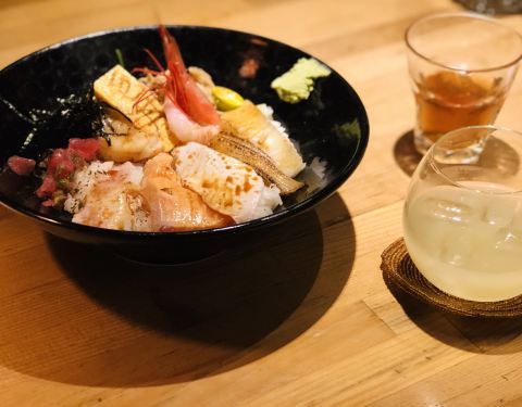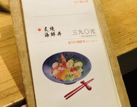 跟着导航走街串巷,在一个小巷子里,比较低调,但是里面却有点意思,很日系的小馆子,吃的是日式盖浇饭,品种很多,刺身品类也丰富,我的最爱咯。 看看单价都也还可以,另外可以加点小酒喝喝。晚上去的有点晚就有点深夜食堂的赶脚,人也是蛮多的,所以建议还是预约 一下看看。点了柚子酒,有着浓郁的柚子清香,酸甜的,加了冰块口感不错。炙烧海鲜丼饭,390NTD,加上服务费,差不多百来元人民币,里面刺身还是挺新鲜的,一共有8种。三文鱼、甜虾、星鳗等等,还可以加钱升级套餐,性价比不错。另外还点了胡麻冷豆腐,也就是冷奴,胡麻sauce酸酸的很开胃,还有白芝麻添香。这顿吃好走回酒店,看了下手表,天哪,抱走了34km。