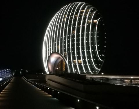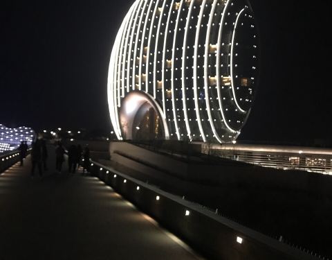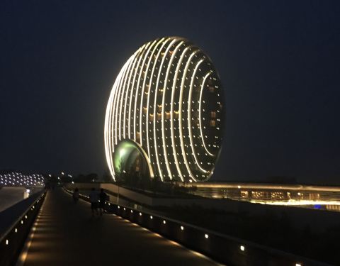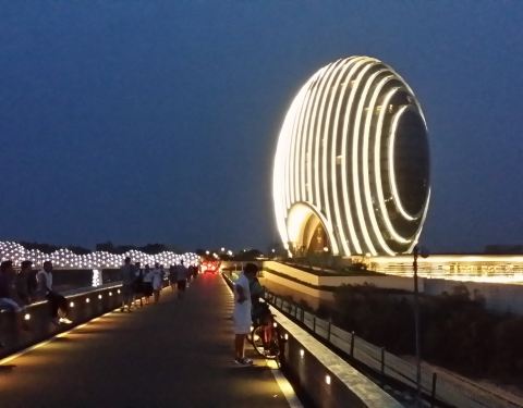 论吃饭,不推荐这个地方,性价比不算太高。不过周围的环境还不错,毕竟就在雁栖湖边上,而且酒店造型也很独特。晚上在灯光配合下的景色效果会更棒!