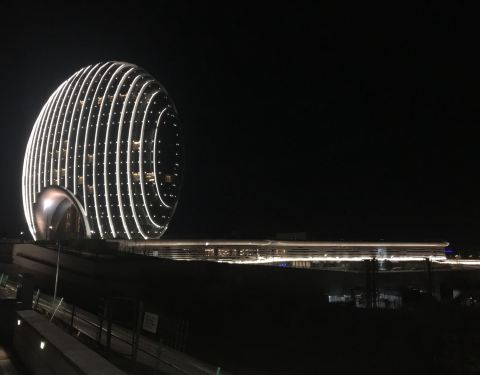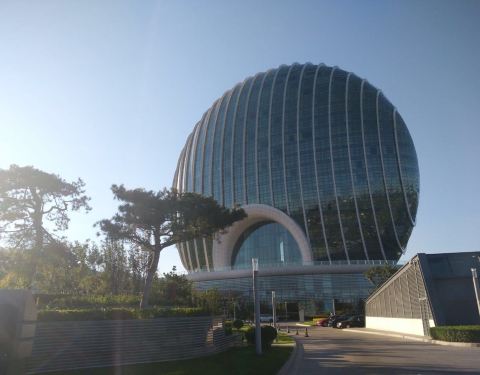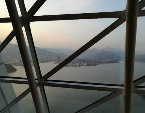 凯宾斯基怡景餐厅位于球形建筑的顶部,所以其实面积非常小,主要是可以看风景,菜的品种很少,连汤带菜就十几样。试了一下板栗红烧肉,炸花椒芽,有机茄子和疙瘩汤,两个人小四百块,不算难吃,也谈不上好吃,尤其是号称地方名产的怀柔没找到板栗,干涩无香,花椒芽很油,疙瘩汤一小盅三十多块,我们大家都笑了。酒店外观独特,装修粗糙,服务员态度很好。