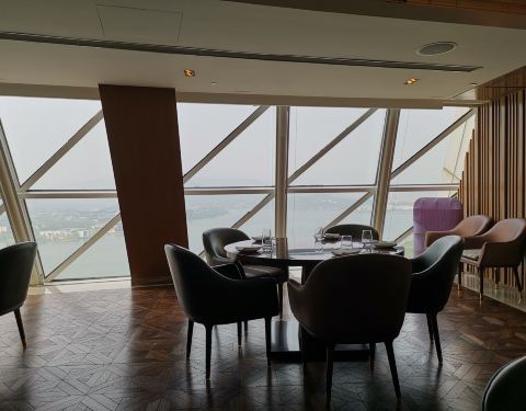 凯宾斯基怡景餐厅位于球形建筑的顶部,所以其实面积非常小,主要是可以看风景,菜的品种很少,连汤带菜就十几样。试了一下板栗红烧肉,炸花椒芽,有机茄子和疙瘩汤,两个人小四百块,不算难吃,也谈不上好吃,尤...