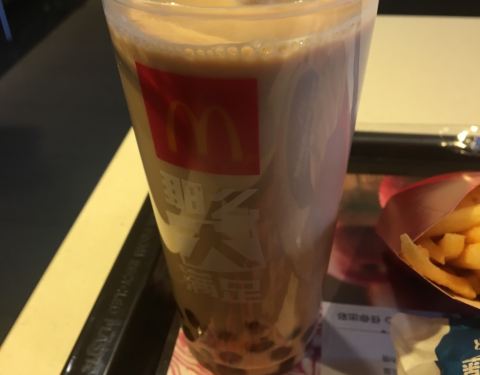 ...双层鳕鱼堡、炸薯条、珍珠奶茶,还不错……分量蛮足的,奶茶味道不错,很大一杯,总体来说还不错……