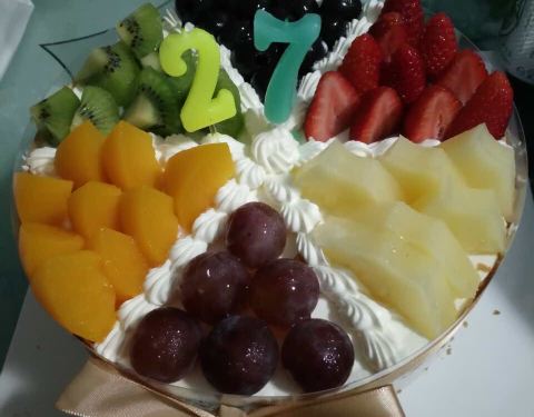 一直在买桂香园的蛋糕点心,这次很失望~~~蛋糕做工粗糙,水果超级少,摆放杂乱无章~~~定的六点送,六点半打电话催居然说让自己去拿,还挂电话,最后七点多才送!看两张图的对比,无语