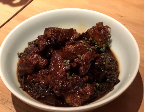 将“春色”常驻于此,菜品也是一改浓油赤酱地本色,篇小清新范儿~即使立夏将至,烈日炎炎,仍能在这栋白色的小别墅里找到几丝春意,甚是心动~店里的装修也是一改本帮菜的古色古香~打造成空间独立感很强的和式感觉...将“春色”常驻于此,菜品也是一改浓油赤酱地本色,篇小清新范儿~即使立夏将至,烈日炎炎,仍能在这栋白色的小别墅里找到几丝春意,甚是心动~店里的装修也是一改本帮菜的古色古香~打造成空间独立感很强的和式感觉~每一个盆栽都是邀请日籍花艺师度身定做的说,立志于打造成这一桌融合本帮菜~ 晴色的夜晚餐厅外霓虹闪烁,坐在户外也是不错的选择哦~每一桌的餐单都是呈现纸质的绳缚放置于餐桌上,等待食客来开启~ 玲珑皮蛋,小清新的本帮菜以凉菜开启~鹌鹑蛋颗颗晶莹剔透腌制成皮蛋的状态~点缀以剁椒,带点鲜味,增加口感,不失为一道极好的开胃凉菜~ 脆片冰激凌山药,将山药打制成绵密的冰激凌口感,有宛如慕斯,撒上蔓越莓美,亦是凉菜亦是甜品,旁边的蛋白饼脆片增加口感,很棒的说,摆盘也很精美。 店里最有名的招牌菜就是这道潮汕水晶冻鱼了,笋壳鱼做底,一改以往烹蒸的手法,而是先蒸后腌再冷藏,使得鱼肉的口感有一种入口即化的感觉~,再点缀上黄豆酱,一口鱼肉下口,黄豆酱提鲜~入口即化的感觉,一口春意融在口中~ 白灼脆猪肝朋友要点的时候,我一开始是拒绝的,因为本身不爱,猪肝自带的内脏气味,但是看排名如此之高,就由得她试试~上桌的猪肝倒是没啥一样,切得也很随意,可一入口就被惊艳到了~酒香满口四溢~盖住了猪肝本有的腥味,原以为看这个色泽猪肝会比较地老没想到,吃到嘴里确实脆嫩的,太神奇了,这个酱汁带点鲜甜,非常地喜欢,下面铺垫的豆芽也很好吃,满口的蛋白质~ 玉米马蹄炖鸡爪,热菜以鲜汤开启,脆甜的玉米马蹄加上鸡爪一起炖煮,这个时节非常地润肺补气,时令好汤~ 龙虾麻婆豆腐,招牌必点,首先这道菜绝对没有看上去那么辣~看似普普通通的麻婆豆腐加上了小龙虾的点缀,按照宫保鸡丁的做法炮制的这道宫保小龙虾,怎能不多下几口饭? 荷香腊味蒸鸡,鸡肉的菜品本身就是我的大爱,加上腊肉和荷叶的点缀,清香了不少,仿佛乡间的野趣~回味不已~ 原味烧仔排,用梅干菜烧汁,我的最爱,选用的梅干菜很清香,提升了不少鲜度~仔排选用的肉的部位也很好,精肉为多,却炖得酥烂~ 乡村石锅豆腐,最爱老豆腐的石墨香以及那浓醇的汤头啦~咸肉吊鲜,春意满满~ 自制腊肉炒花生苗,好一道特别地素菜,花生苗外面不多见~鲜汁脆甜~ 主食一道简简单单的开阳葱油拌面,却让我感受到,哦~实实在在的本帮口味~ 甜品一改以往的酒酿小圆子,来道特别地十年陈皮红豆沙,陈皮的香久久不能