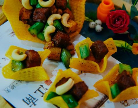 漳州美食探店|性价比超高的佰卉轩中餐厅 夜之漳州,有迷人的飘带桥,也有吃不完的美食~古城的小吃跟酒店的大菜各有秋千。 漳州佰翔圆山酒店二楼佰卉轩中餐厅,五星的水准,接地气的价位,也是漳州最热门的中餐厅,包厢可以看到很美的芗城夜色。 粉丝蒸山药:用XO酱蒸,吃出了龙虾的感觉 家烧野生黄鱼:黄鱼非常嫩 鹅肝酱片皮鸭:面包片中包裹鹅肝酱和片皮鸭,吃起来格外美味 鲍汁唇翅:唇齿留香的大补之品 饭后甜品来个人气爆品的芝士地瓜,清明粿配桃胶,也是极好呀!